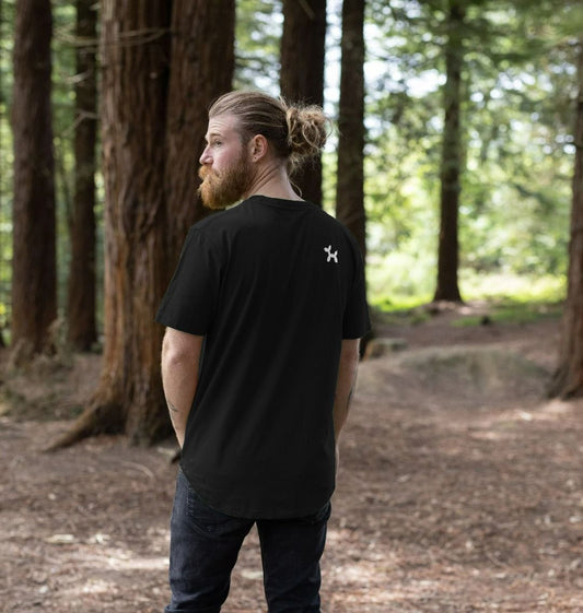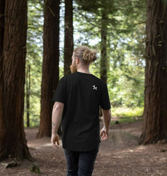 Long Line T-shirt With Mini Logo & Back Print In Black