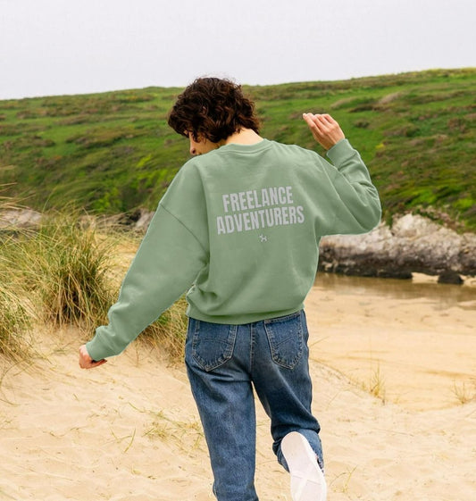 Freelance Adventurers Oversized Crew Neck Sweatshirt With Back Print In White