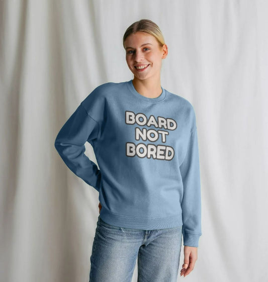 Board Not Bored Oversized Crew Neck Sweatshirt With Back Print In White