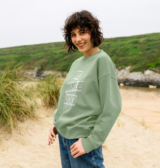 Be More Dog Oversized Crew Neck Sweatshirt With Back Print In White